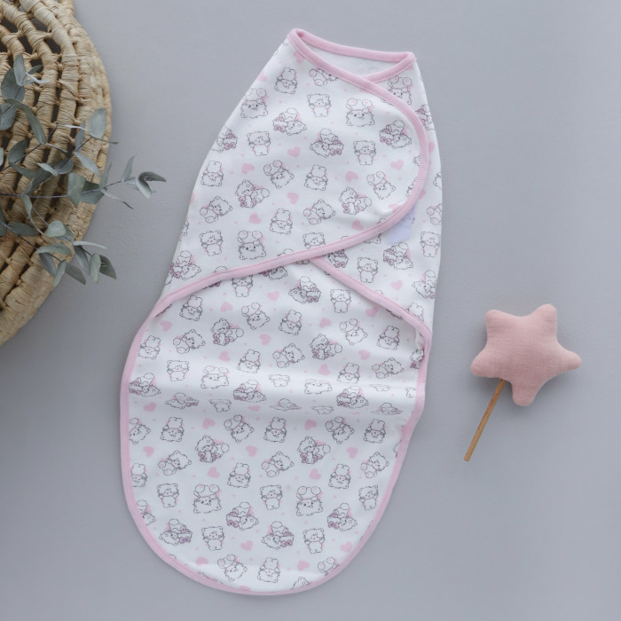 Коконпелюшка на липучці Котики Рожевий (Інтерлок) 62 (3-6міс)
