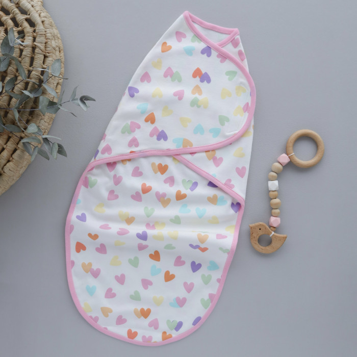 Коконпелюшка на липучці Сердечка Різнокольорові (Інтерлок) 62 (3-6міс)