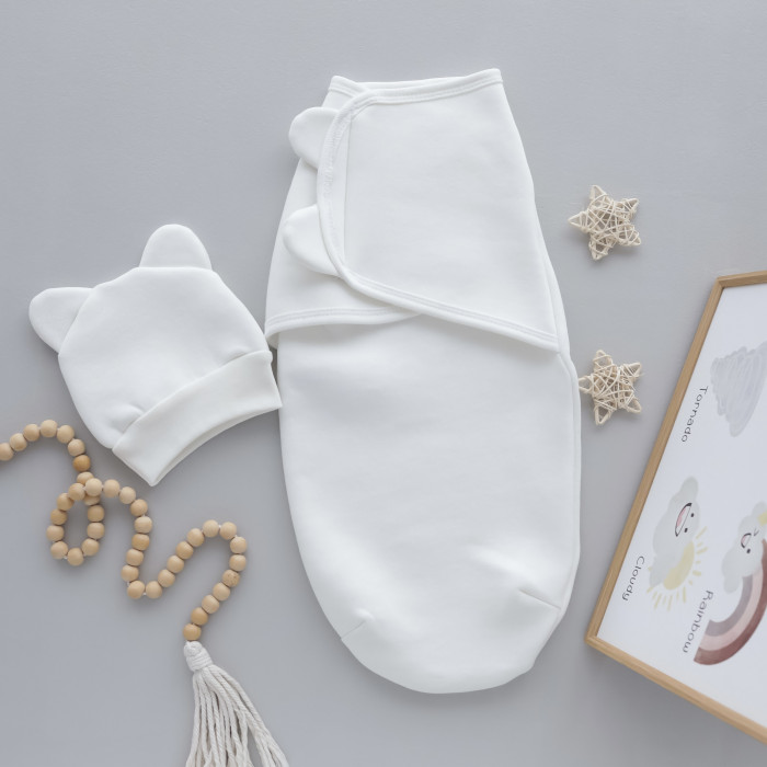 Коконпелюшка на липучці та шапочка Молочний (Тринитка з начосом) 62 (0-4міс)