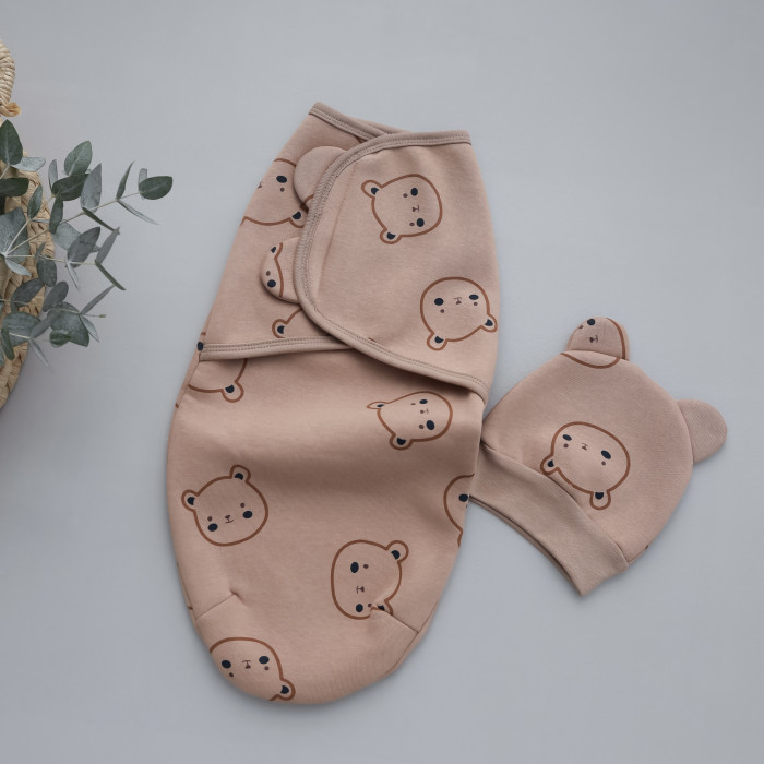 Коконпелюшка на липучці та шапочка Ведмедик (Тринитка з начосом) 62 (0-4міс)