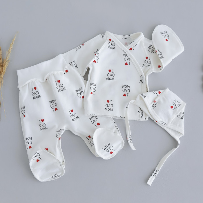 Набір 3в1: Льоля, повзунки та шапочка на зав’язках Кохаю маму тато (Футер - з начосом) 62 (3-6міс)