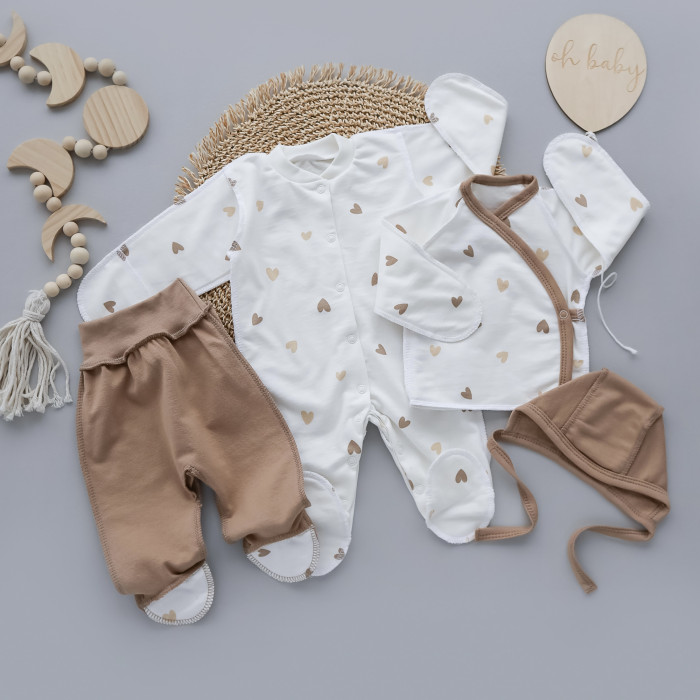 Набір 4в1: Чоловічок, льоля, повзунки та шапочка на зав’язках Сердечка Кавовий (Футер - з начосом) 56 (0-3міс)