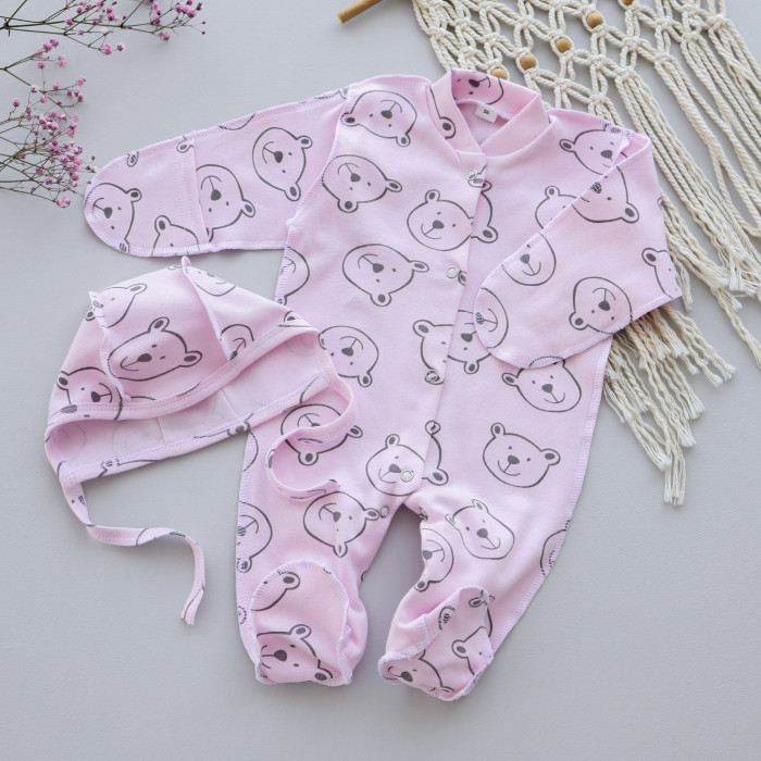Чоловічок та шапочка Ведмедик Рожевий (Інтерлок) 56 (0-3міс)