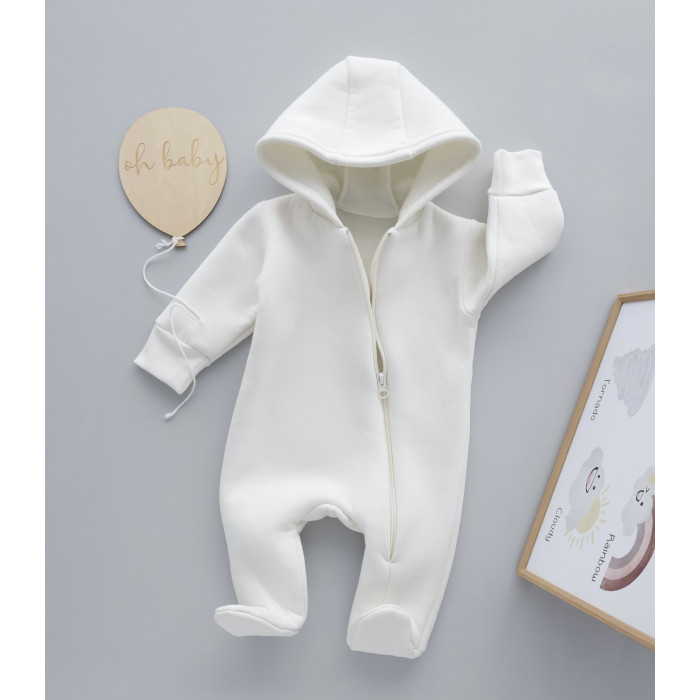 Комбінезон з капюшоном тринитка (з начосом) на змійці Молочний 62 (0-3міс)