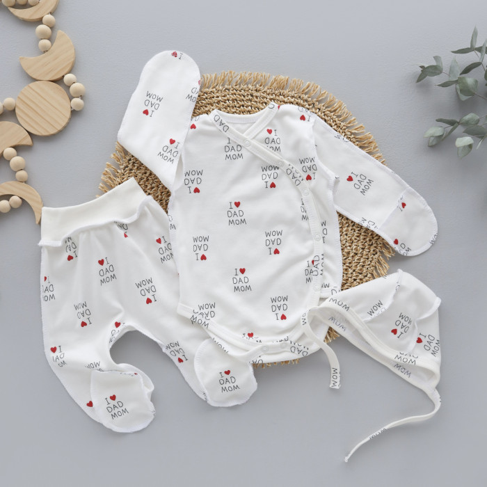 Набір 3в1: Боді, повзунки та шапочка на зав’язках Кохаю мама тато (Інтерлок) 56 (0-1міс)