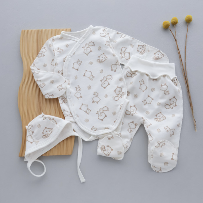 Набір 3в1: Боді, повзунки та шапочка на зав’язках Лисята (Футер - з начосом) 56 (0-3міс)