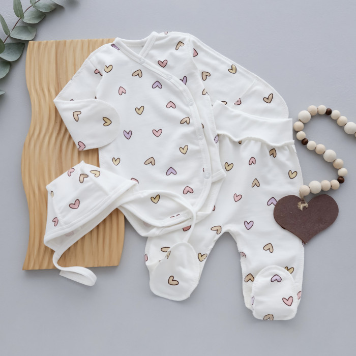 Набір 3в1: Боді, повзунки та шапочка на зав’язках Сердечка Фіолетовий (Футер - з начосом) 56 (0-3міс)