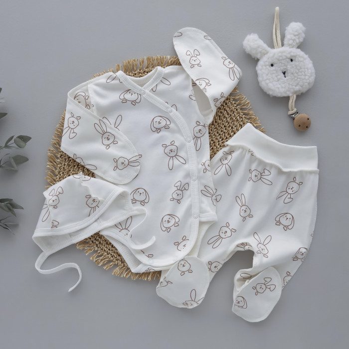 Набір 3в1: Боді, повзунки та шапочка на зав’язках Зайчик (Інтерлок) 56 (0-1міс)