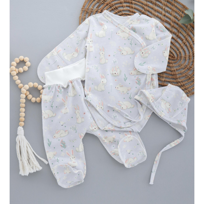 Набір 3в1: Боді, повзунки та шапочка на зав’язках Зайчики (Футер - з начосом) 62 (3-6міс)
