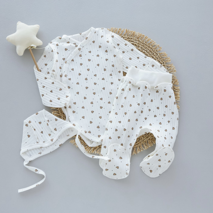 Набір 3в1: Боді, повзунки та шапочка Сердечка коричневі (Стрейч - кулір) 56 (0-3міс)