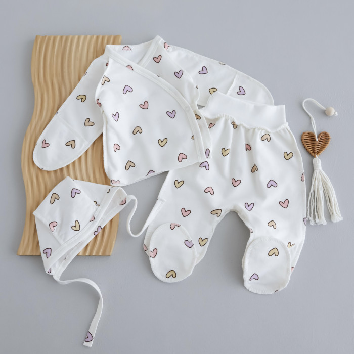 Набір 3в1: Льоля, повзунки та шапочка на зав’язках Сердечка Фіолетові (Футер - з начосом) 62 (3-6міс)
