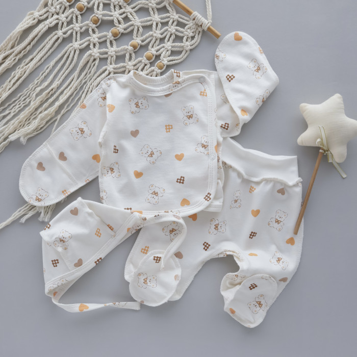 Набір 3в1: Льоля, повзунки та шапочка на зав’язках Сердечка Ведмедики (Футер - з начосом) 62 (1-3міс)