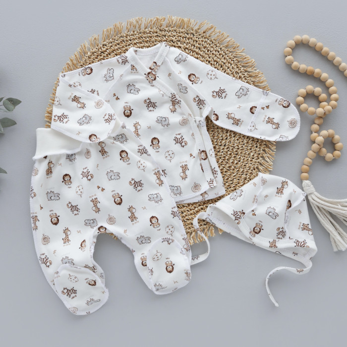 Набір 3в1: Льоля, повзунки та шапочка на зав’язках Звірята Бежевий (Інтерлок) 56 (0-1міс)