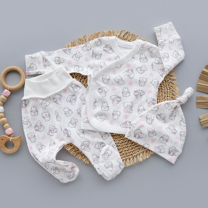 Набір 3в1: Льоля, повзунки та шапочка вузлик Котики Рожевий (Інтерлок) 62 (3-6міс)