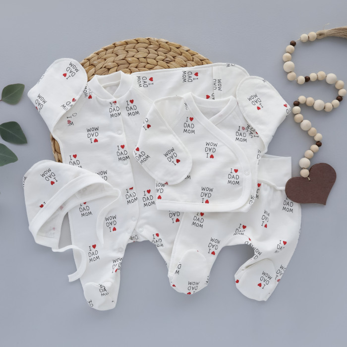 Набір 4в1: Чоловічок, льоля, повзунки та шапочка на зав’язках Кохаю мама тато (Футер - з начосом) 62 (3-6міс)