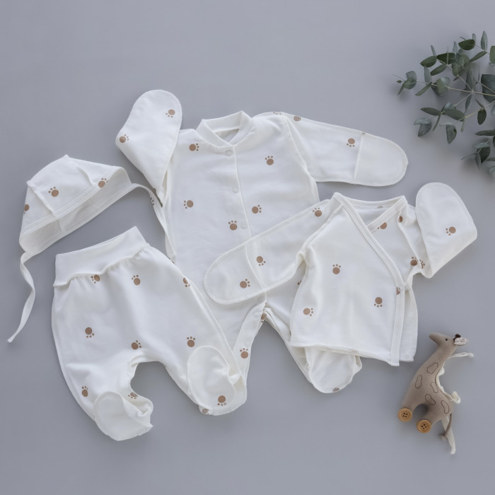 Набір 4в1: Чоловічок, льоля, повзунки та шапочка на зав’язках Лапки (Футер - з начосом) 56 (0-3міс)