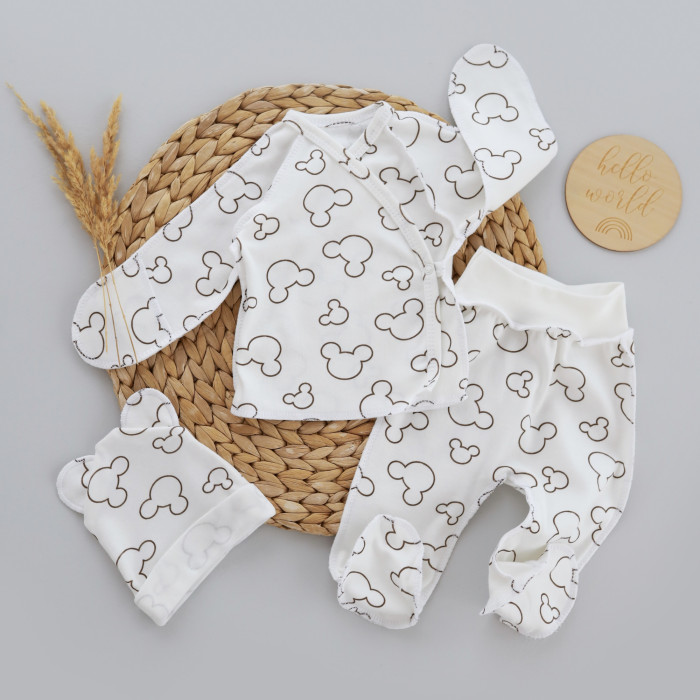Набір 3в1: Льоля, повзунки та шапочка Міккі Молочний (Інтерлок) 62 (3-6міс)