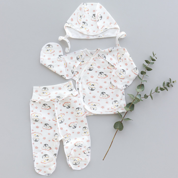 Набір 3в1: Льоля, повзунки та шапочка Пінгвіни (рубчик) 56 (0-3міс)