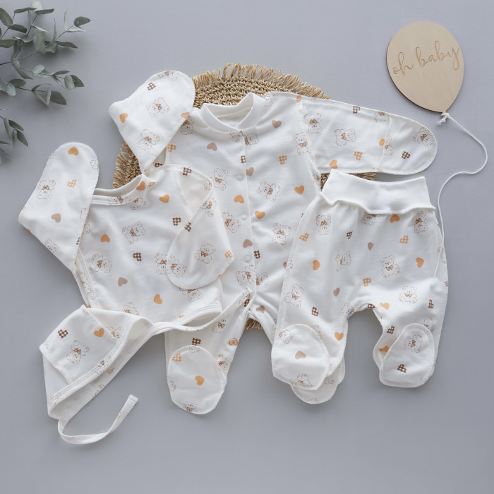 Набір 4в1: Чоловічок, льоля, повзунки та шапочка на зав’язках Сердечка Ведмедики (Футер - з начосом) 56 (0-1міс)