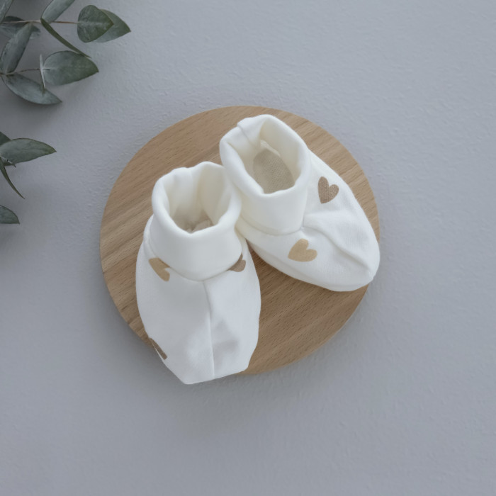 Пінетки Сердечка Бежевий (Футер - з начосом) 56 (0-3міс)