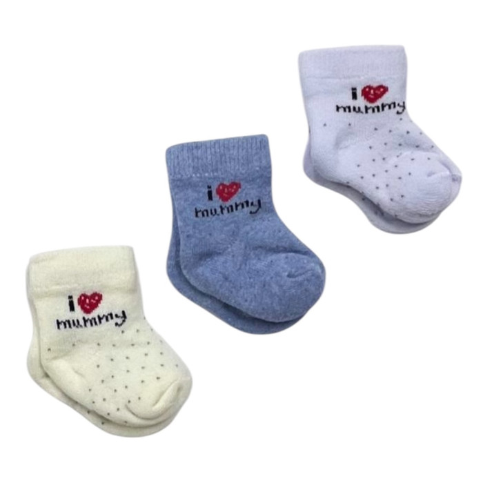 Шкарпетки 3 пари: Молочний, блакитний, білий Кохаю (махрові) 56 (0-3міс)