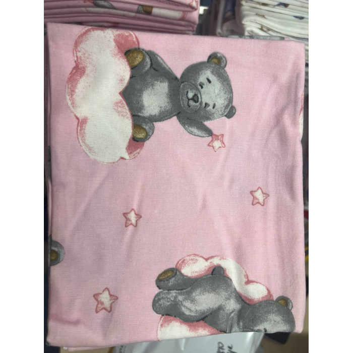 Пелюшка фланелева/байкова (Туреччина) Ведмедик на хмаринці Рожевий 90/80