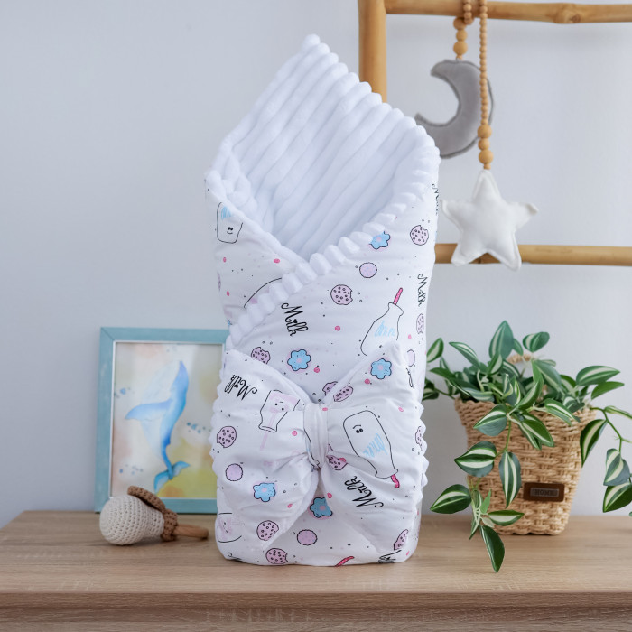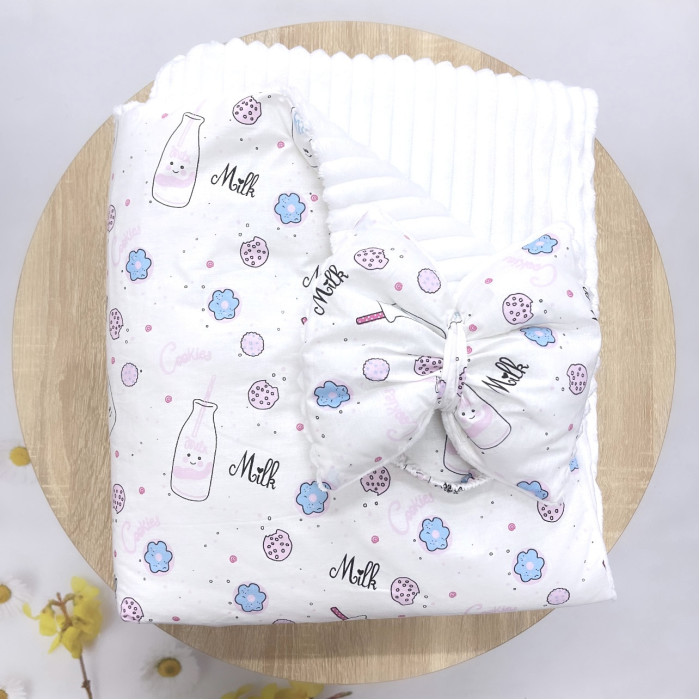 Плед зі з‘ємним утеплювачем та бантом-резинкою Мілк Рожевий/ Білий плюш 90/80