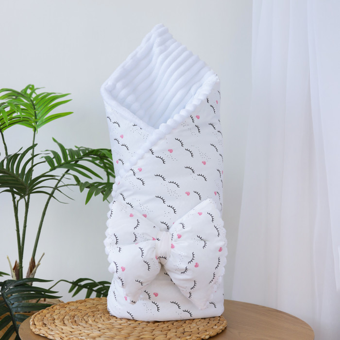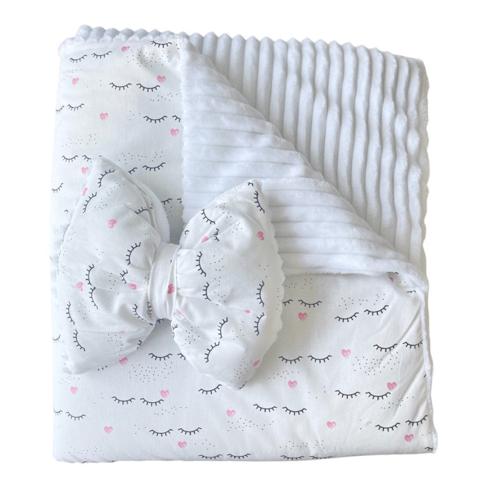 Плед зі з‘ємним утеплювачем та бантом-резинкою Вії Рожевий / Білий плюш 90/80