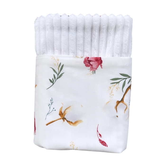 Плед плюш, без утеплення Квіти троянди/ Білий плюш 100/80