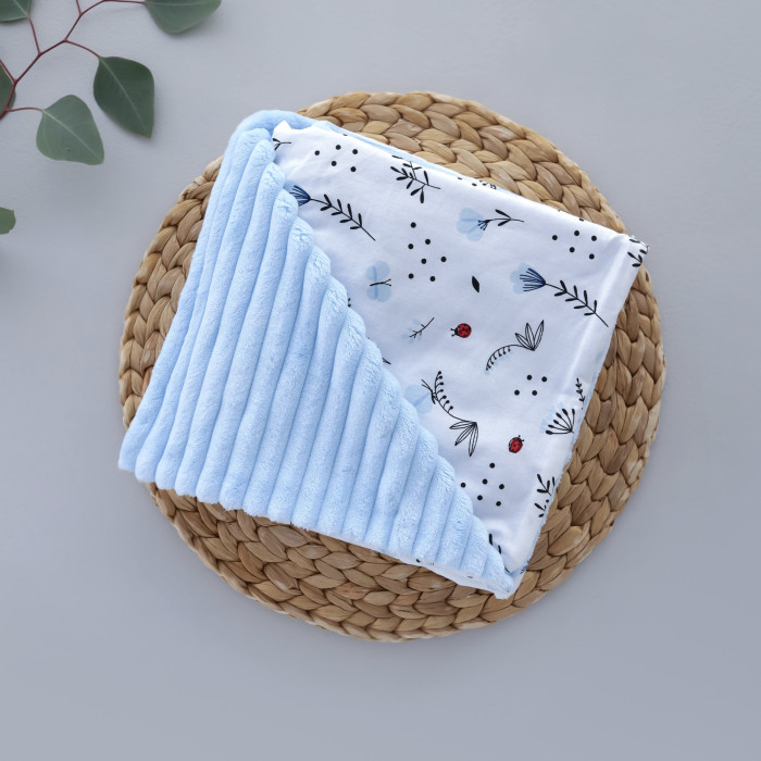 Плед плюш, без утеплення Квіточки Блакитний/ Блакитний плюш 100/80