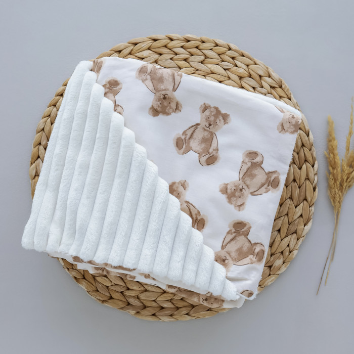 Плед плюш, без утеплення Ведмедики з хусточкою Бежевий/ Молочний плюш 100/80