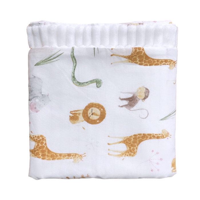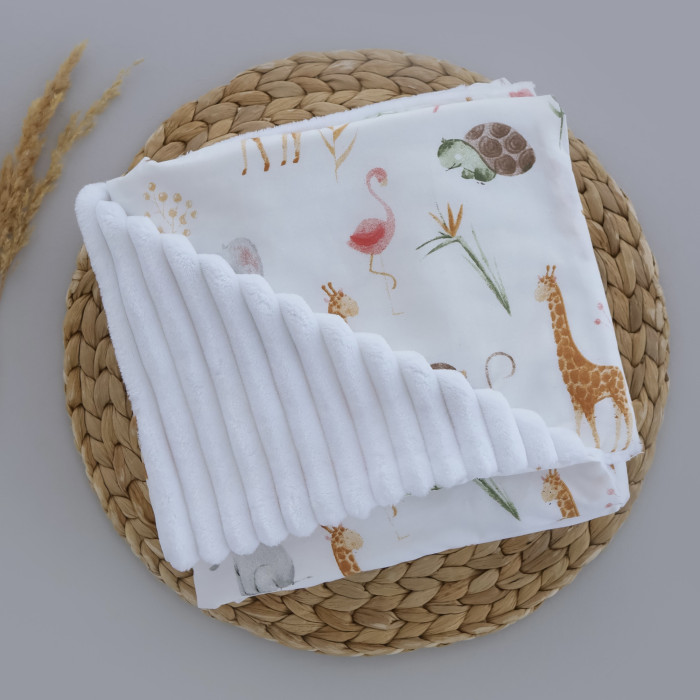 Плед плюш, без утеплення Жирафіки /Білий плюш 100/80