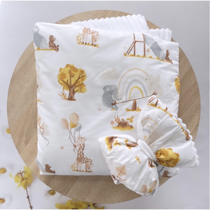 Плед зі з‘ємним утеплювачем та бантом-резинкою Зоопарк / Білий плюш 90/80