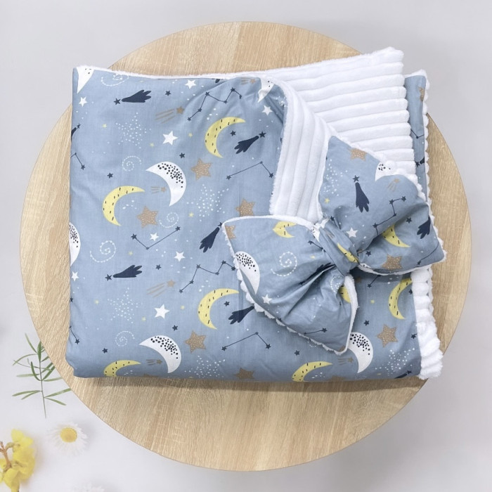 Плед зі з‘ємним утеплювачем та бантом-резинкою Сузір’я / Білий плюш 90/80