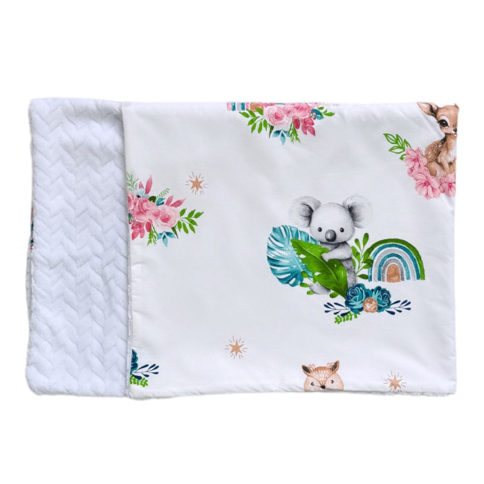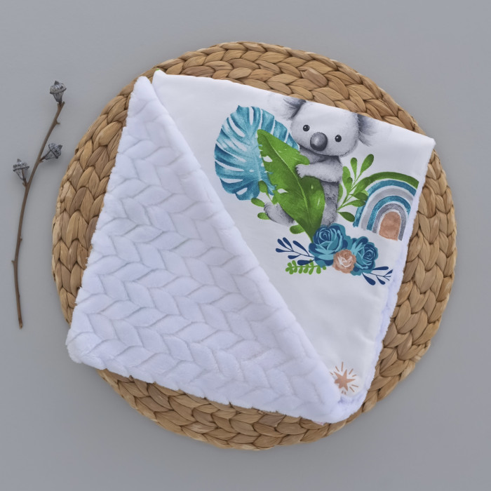 Плед плюш, без утеплення Коала Бірюзовий /Білий плюш косичка 100/80