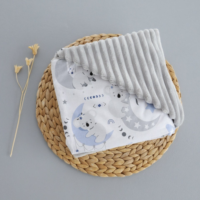 Плед плюш, без утеплення Коала Блакитний/ Сірий плюш 100/80