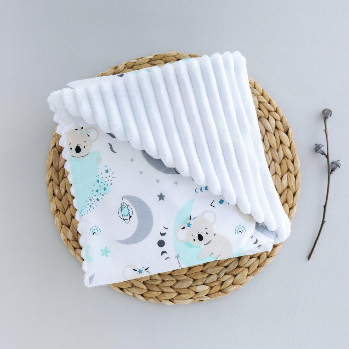 Плед плюш, без утеплення Коала Мʼятний /Білий плюш 100/80
