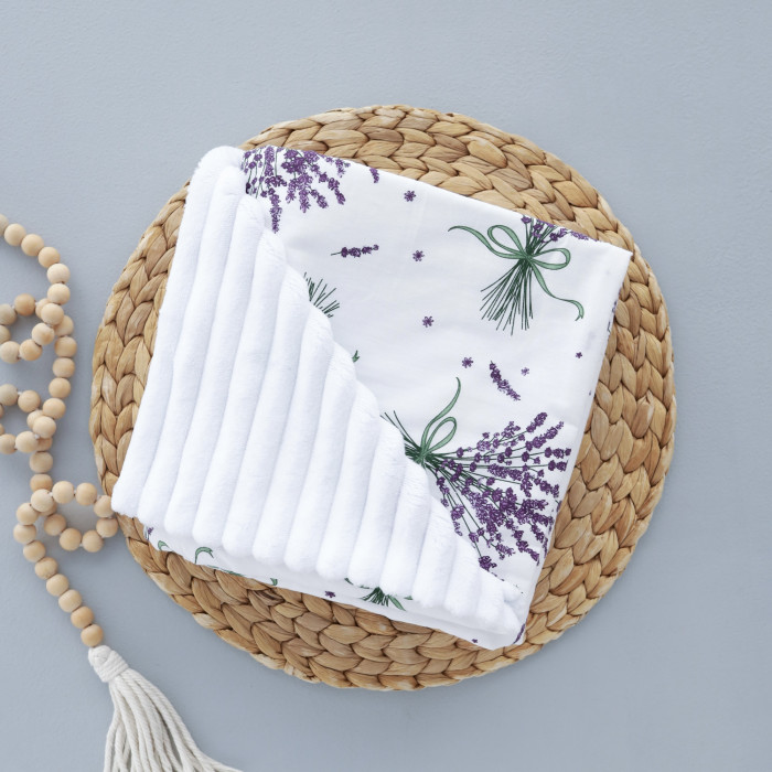 Плед плюш, без утеплення Лаванда / Білий плюш 100/80