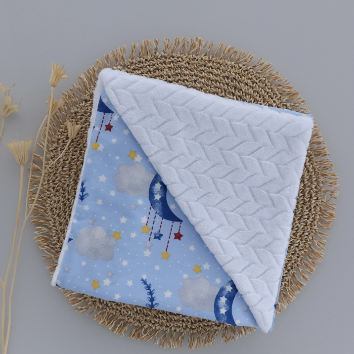 Плед плюш без утеплення Місяць Хмаринка Блакитний/ Білий плюш косичка 100/80