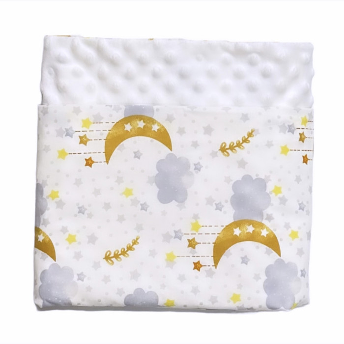 Плед плюш, без утеплення Місяць Хмаринка Жовтий / Білий плюш пупиришка 100/80