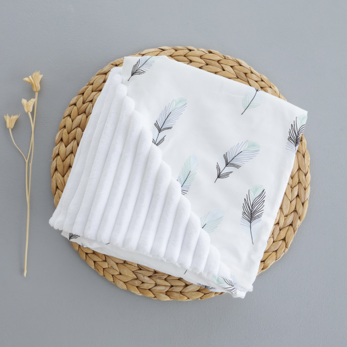Плед плюш, без утеплення Пірʼїнки Блакитний/ Білий плюш 100/80