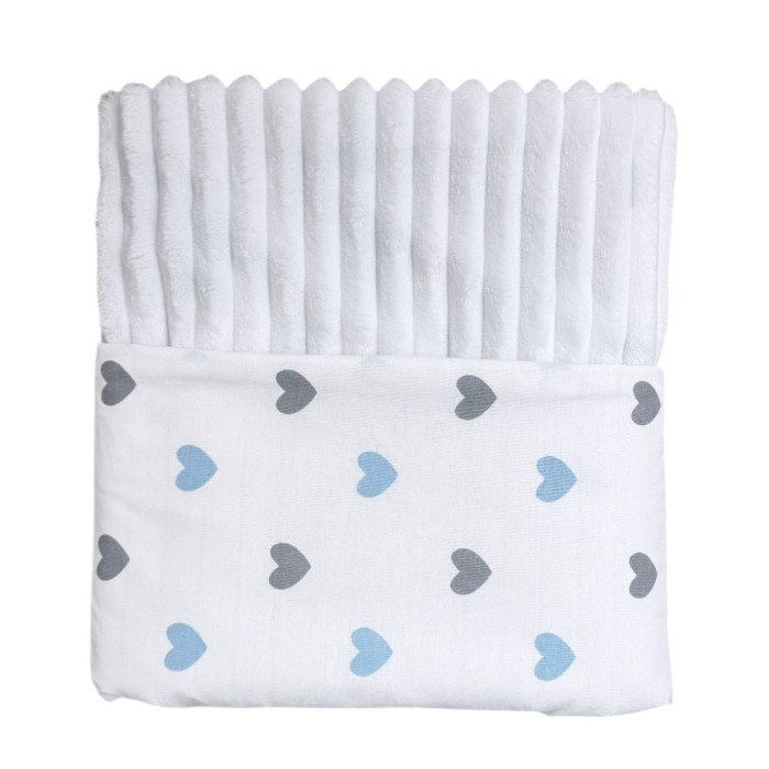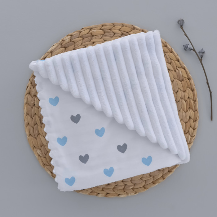 Плед плюш, без утеплення Сердечка Блакитний /Білий плюш 100/80