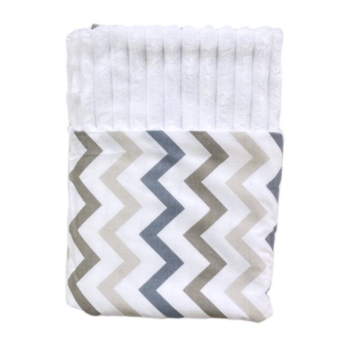 Плед плюш, без утеплення Зігзаг Сірий /Білий плюш 100/80