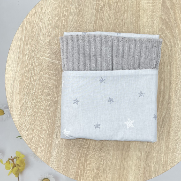 Плед плюш, без утеплення Зірки на Сірому/ Сірий плюш 100/80