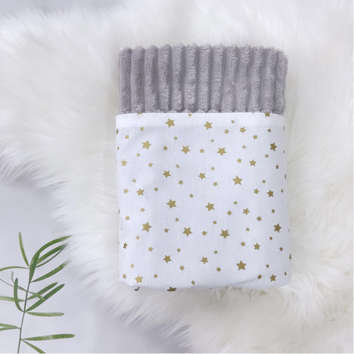 Плед плюш, без утеплення Зірки золото (гліттер) / Сірий плюш 100/80