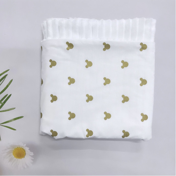 Плед плюш Міккі золото (гліттер)/ Білий плюш 100/80