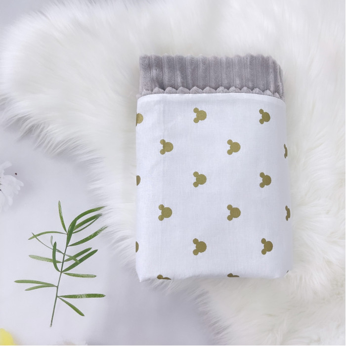 Плед плюш Міккі золото (гліттер)/ Сірий плюш 100/80