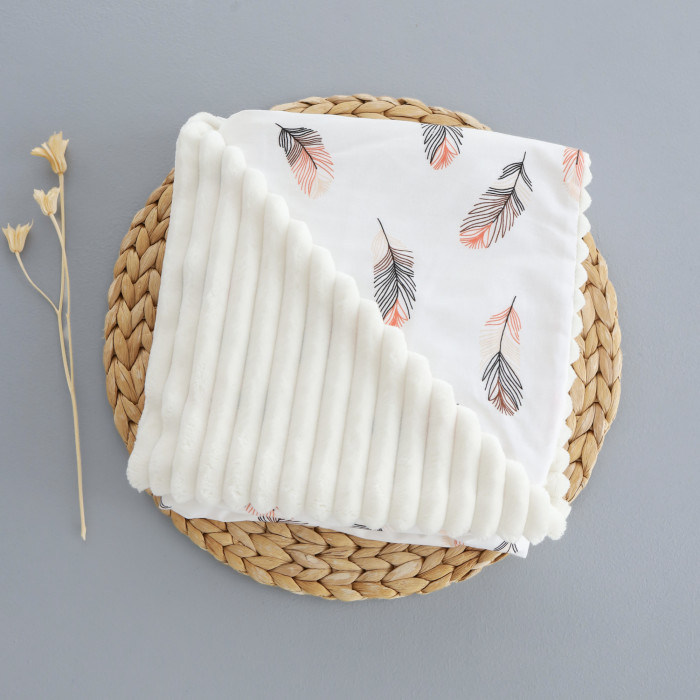 Плед плюш Пір’їнки Кораловий / Молочний плюш 100/80