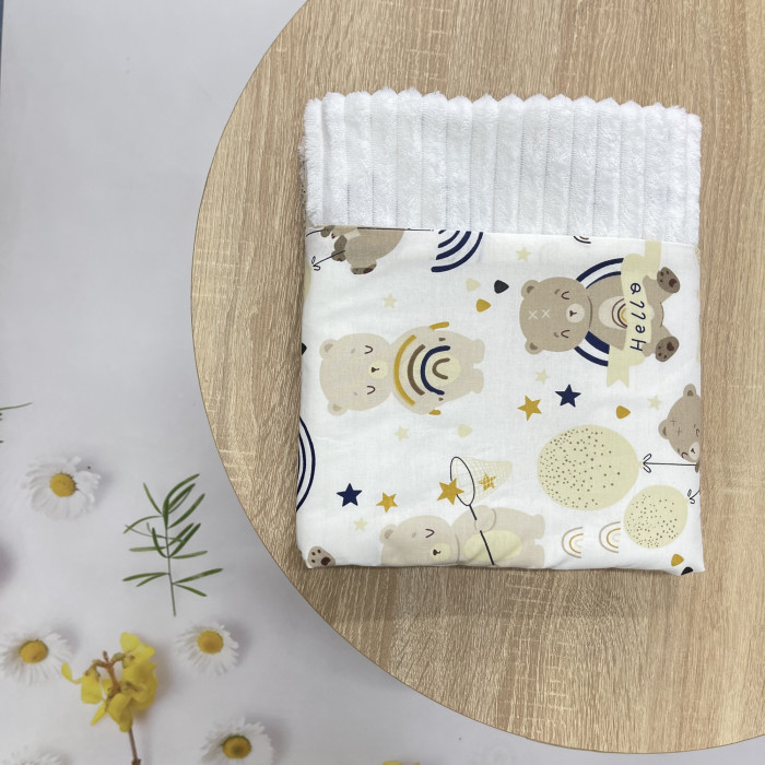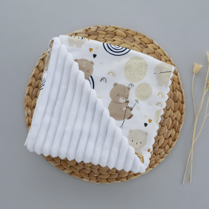 Плед плюш Ведмедик Бежевий /Білий плюш 100/80