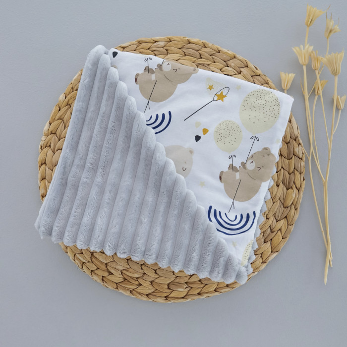Плед плюш Ведмедик бежевий /Сірий плюш 100/80